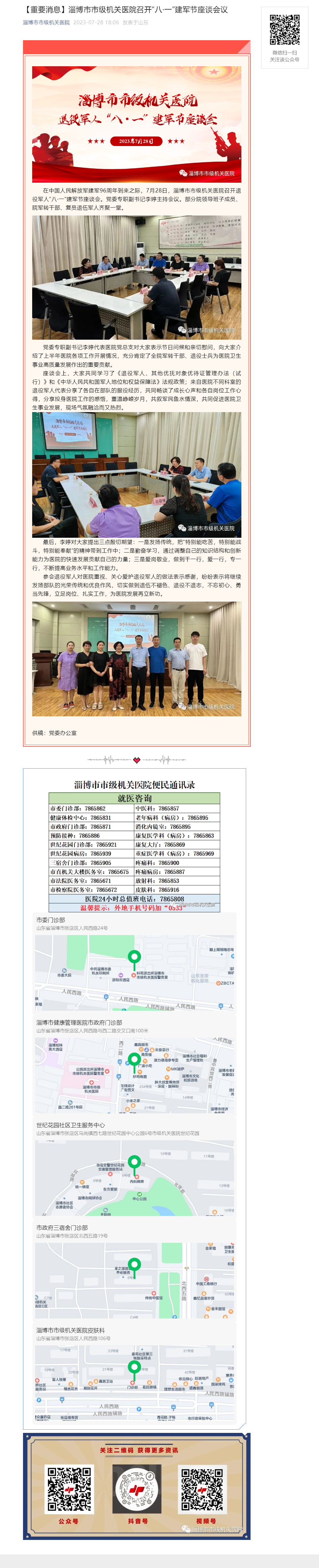 【重要消息】淄博市市级机关医院召开“八·一”建军节座谈会议
