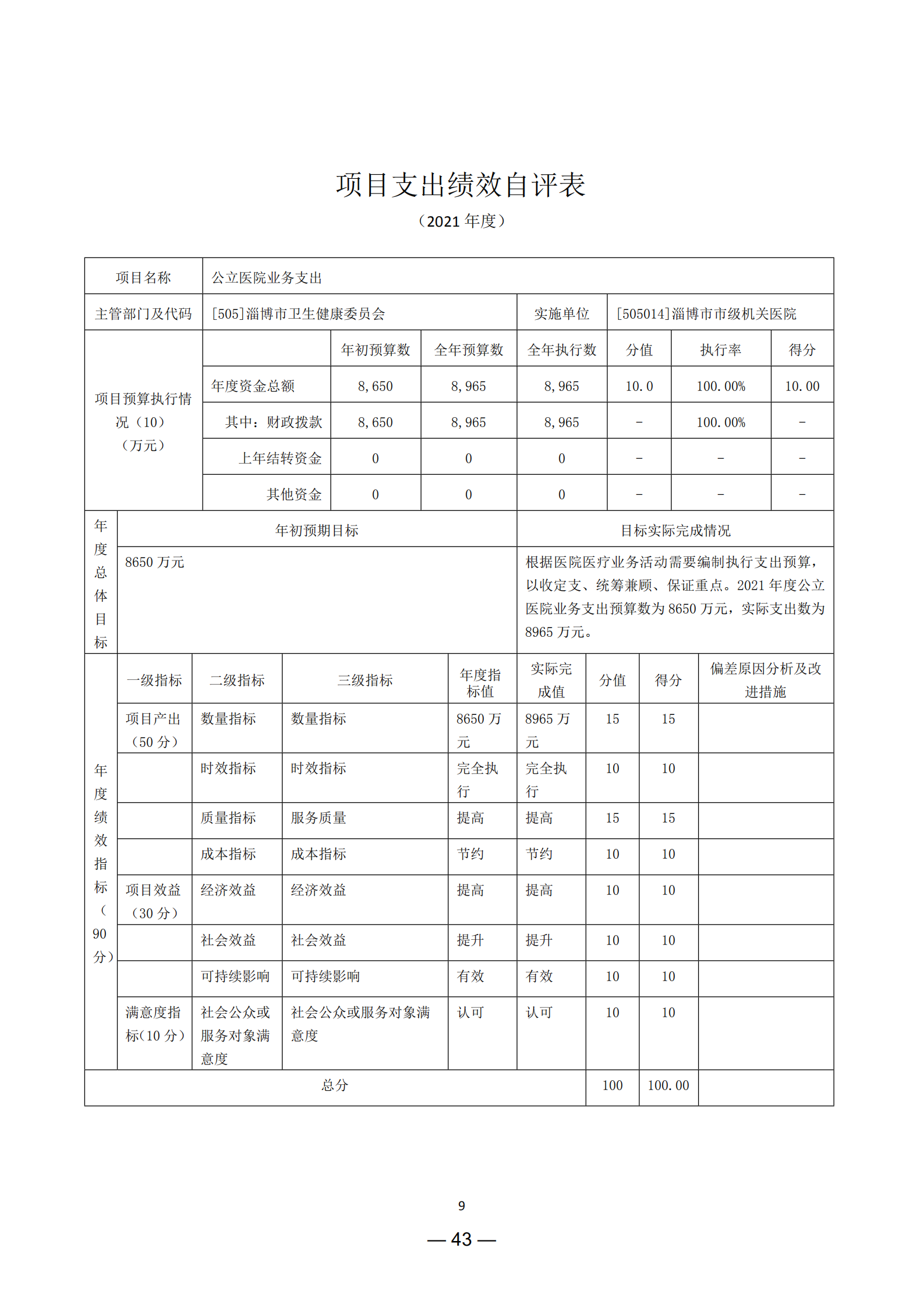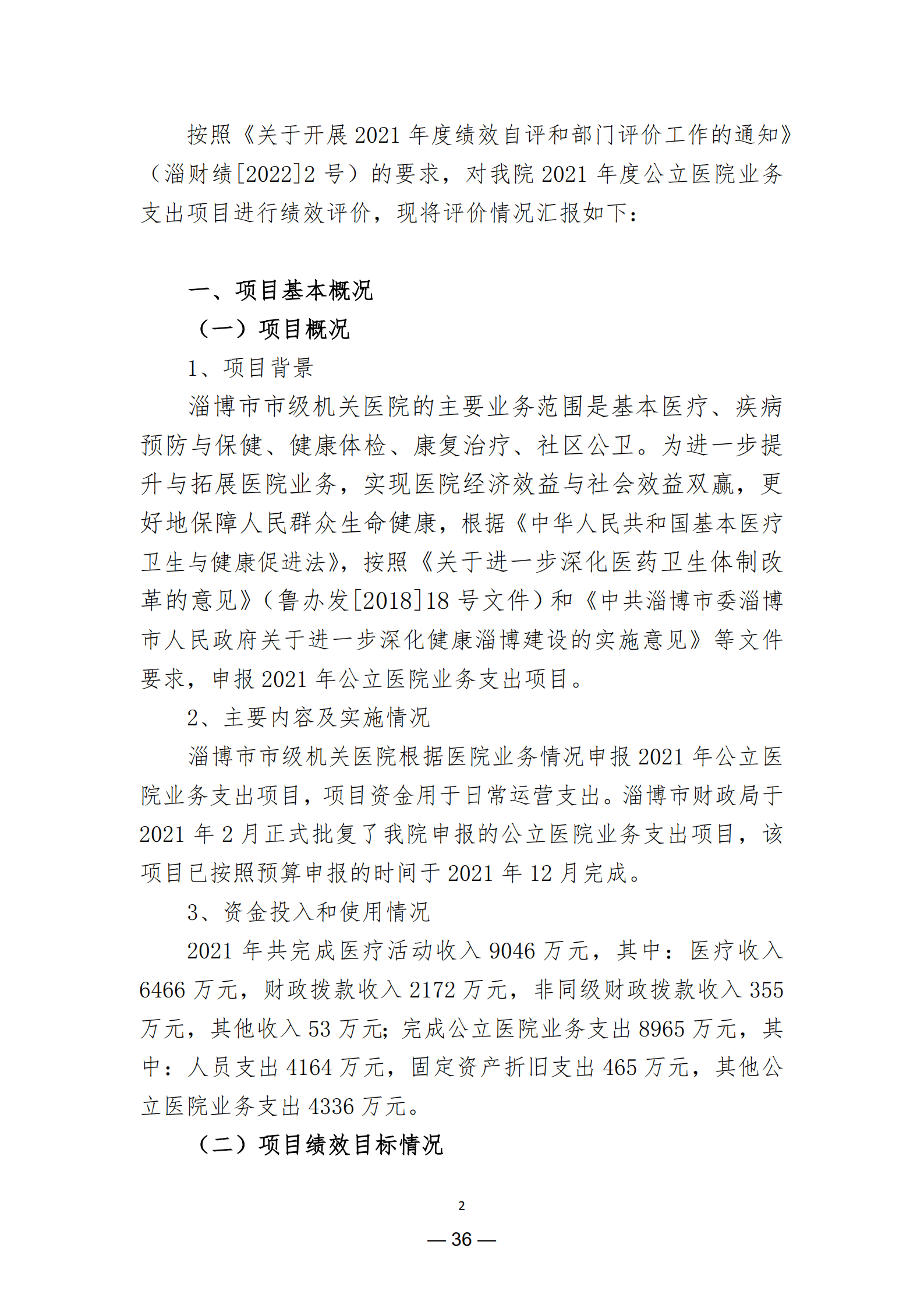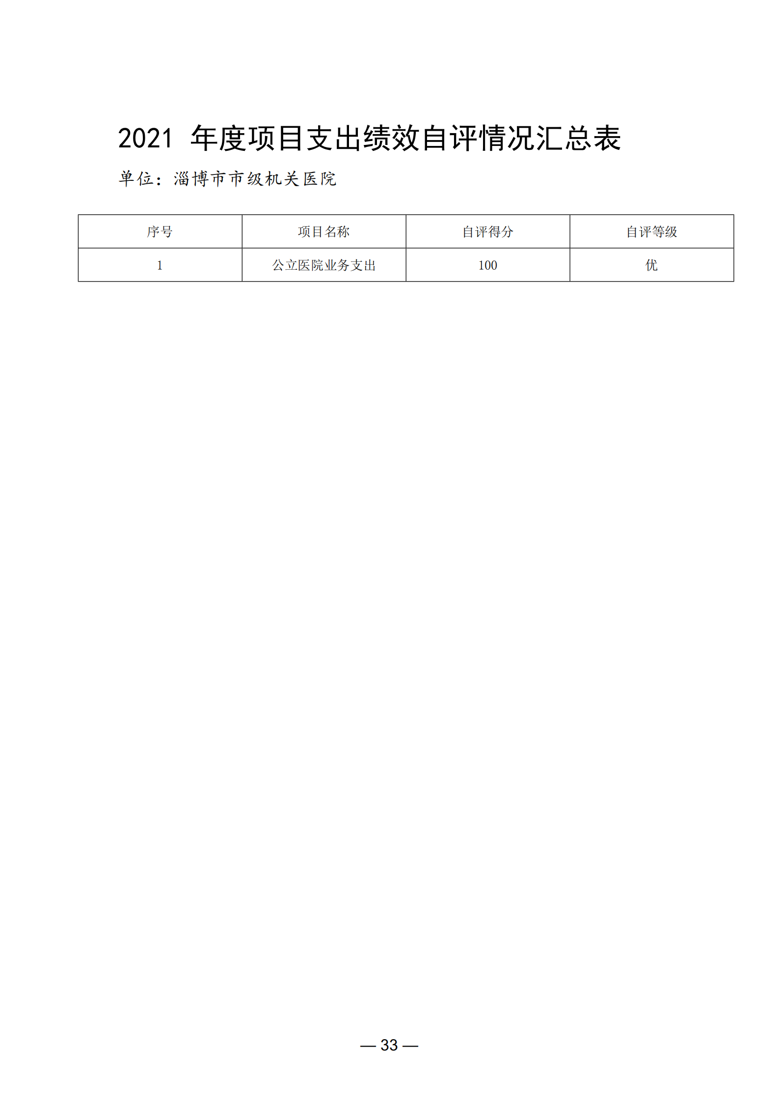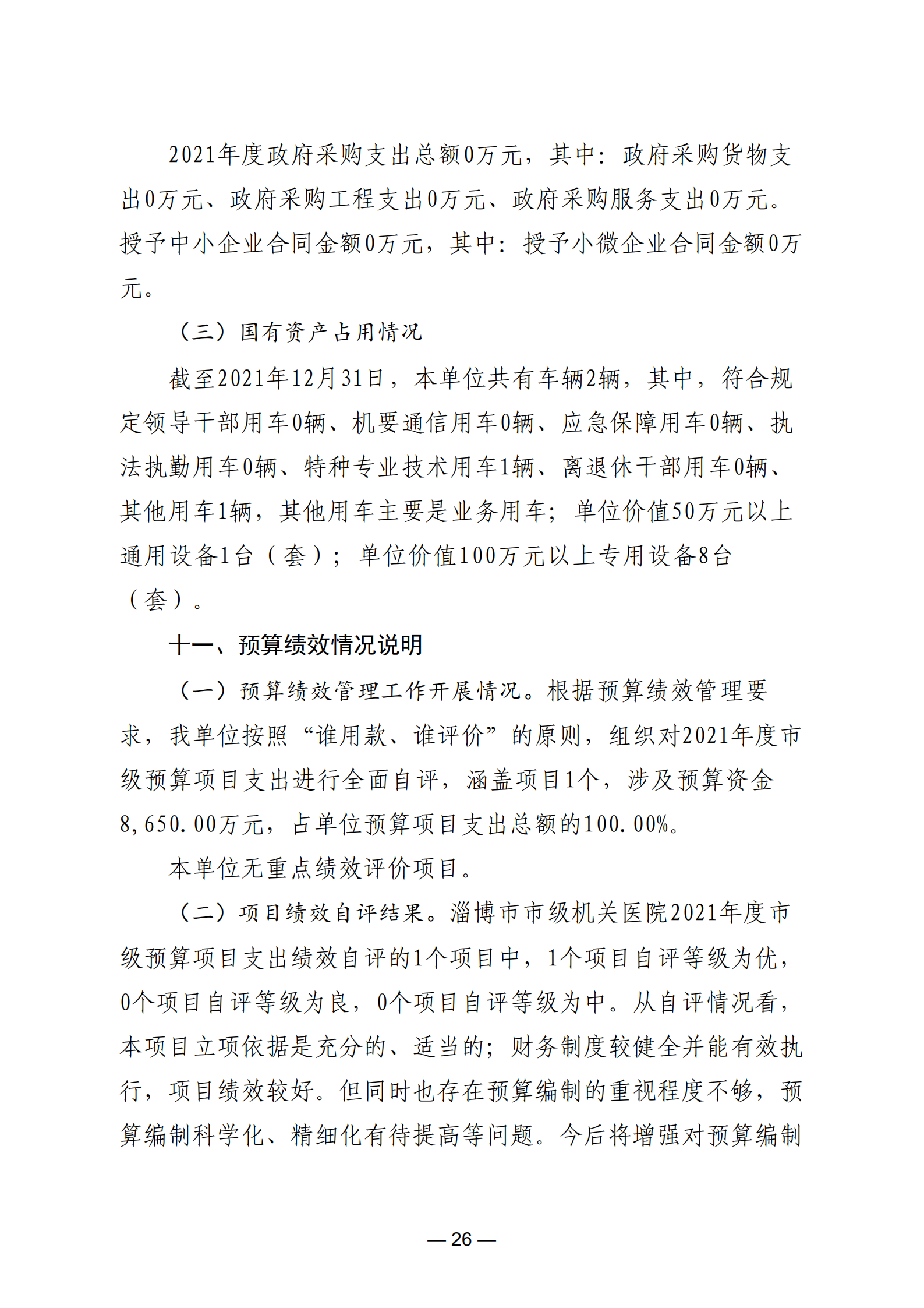 【决算公开】2021年度淄博市市级机关医院决算报告
