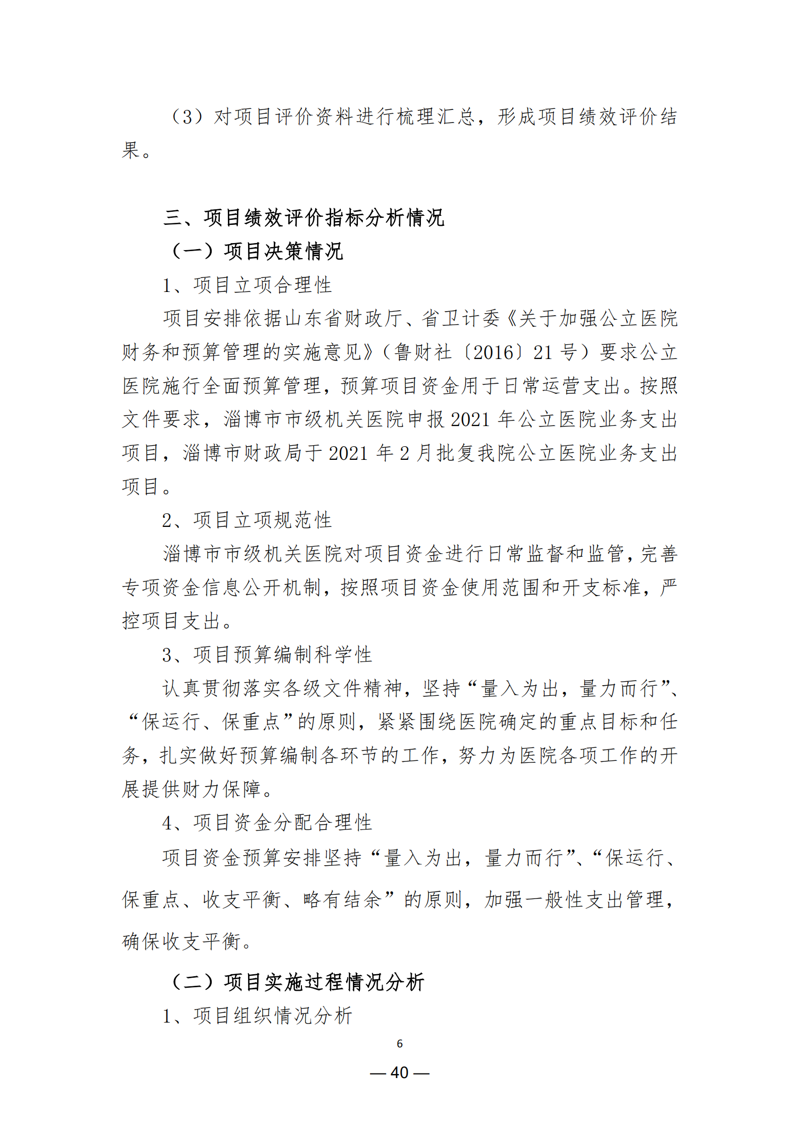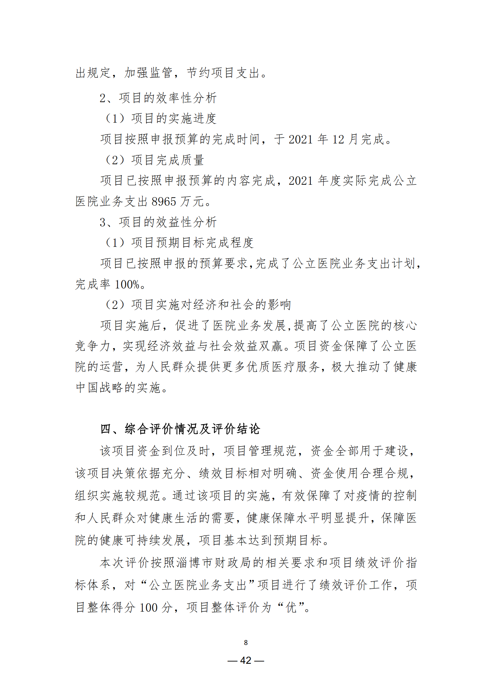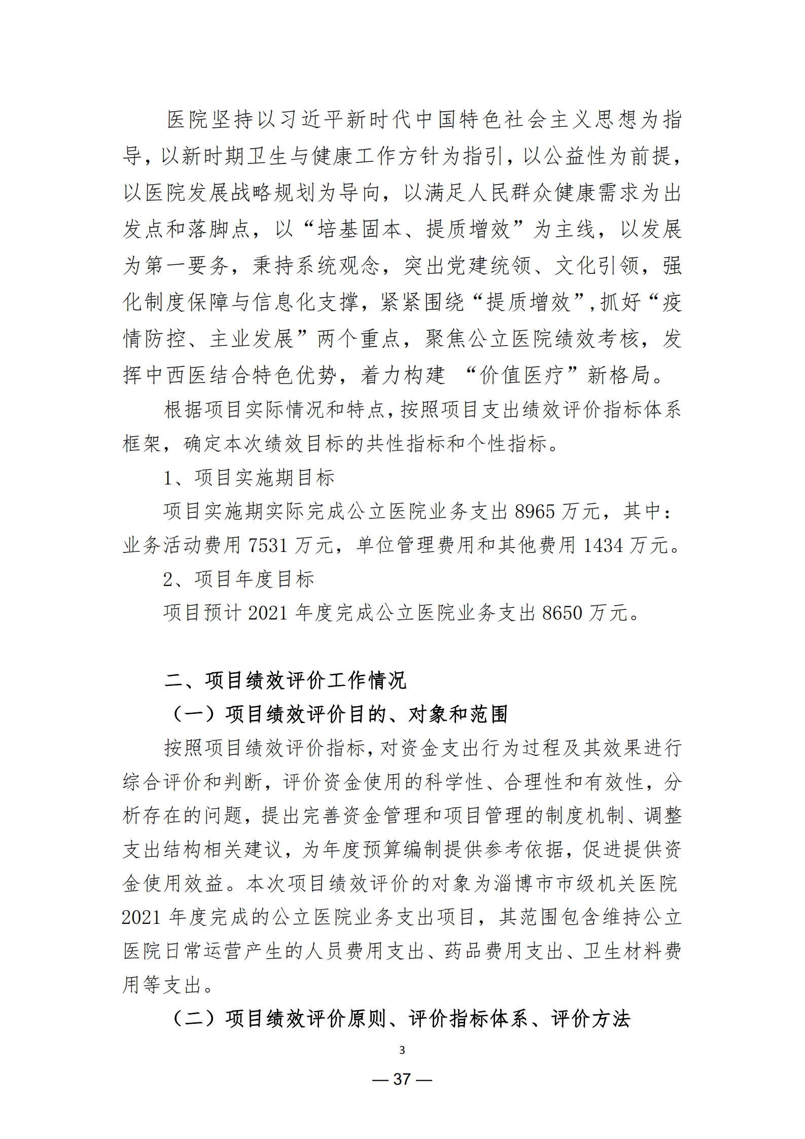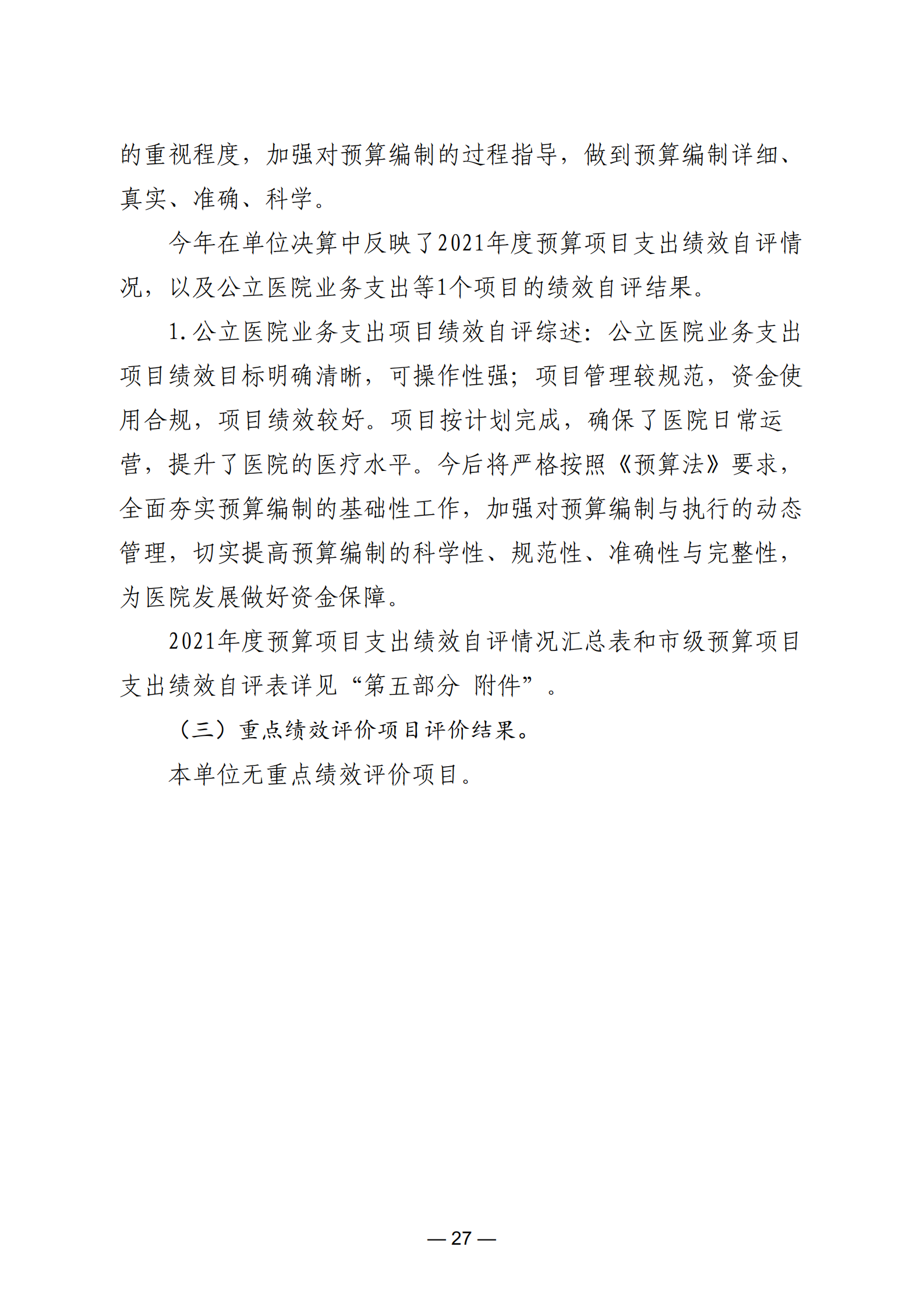 【决算公开】2021年度淄博市市级机关医院决算报告