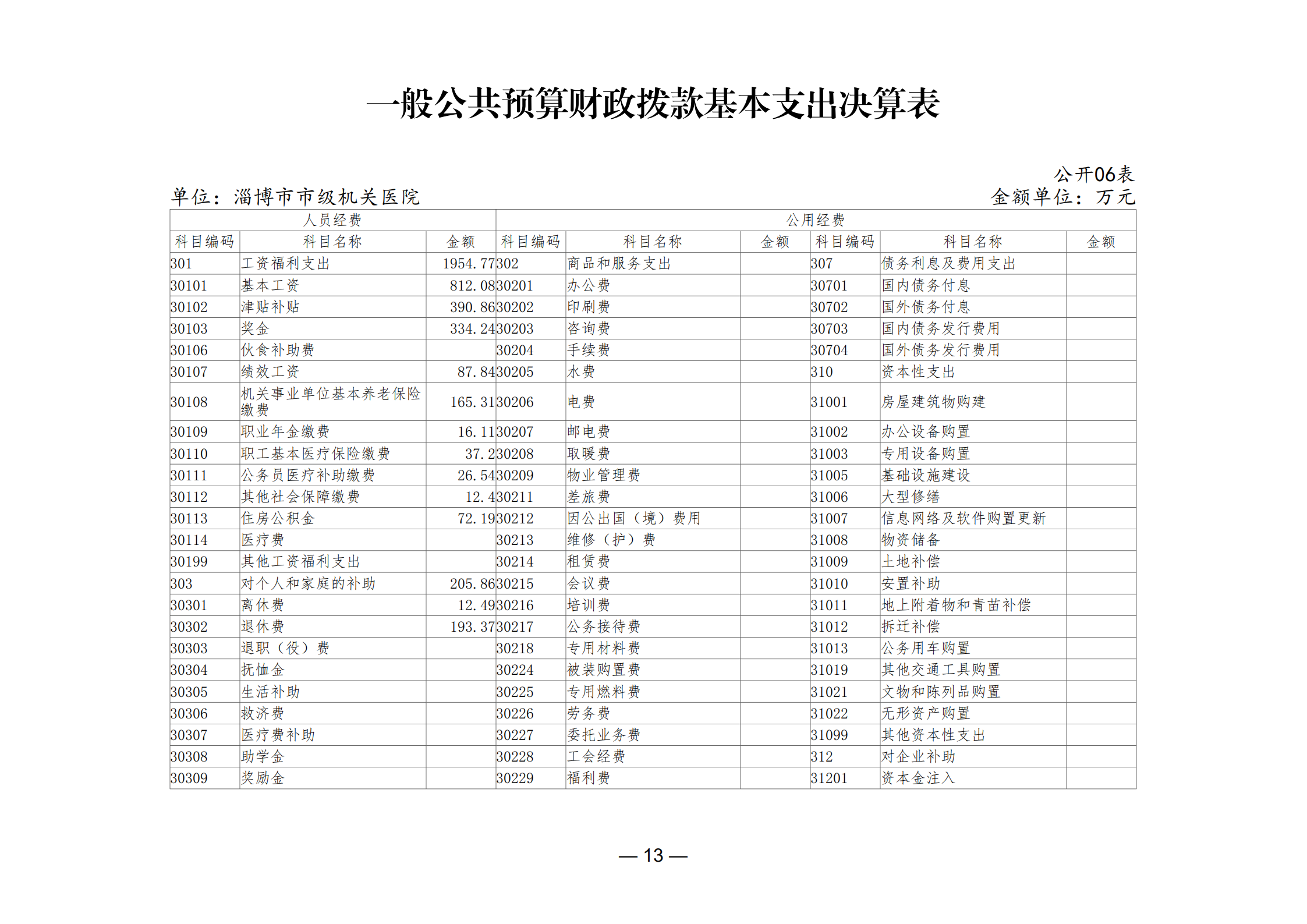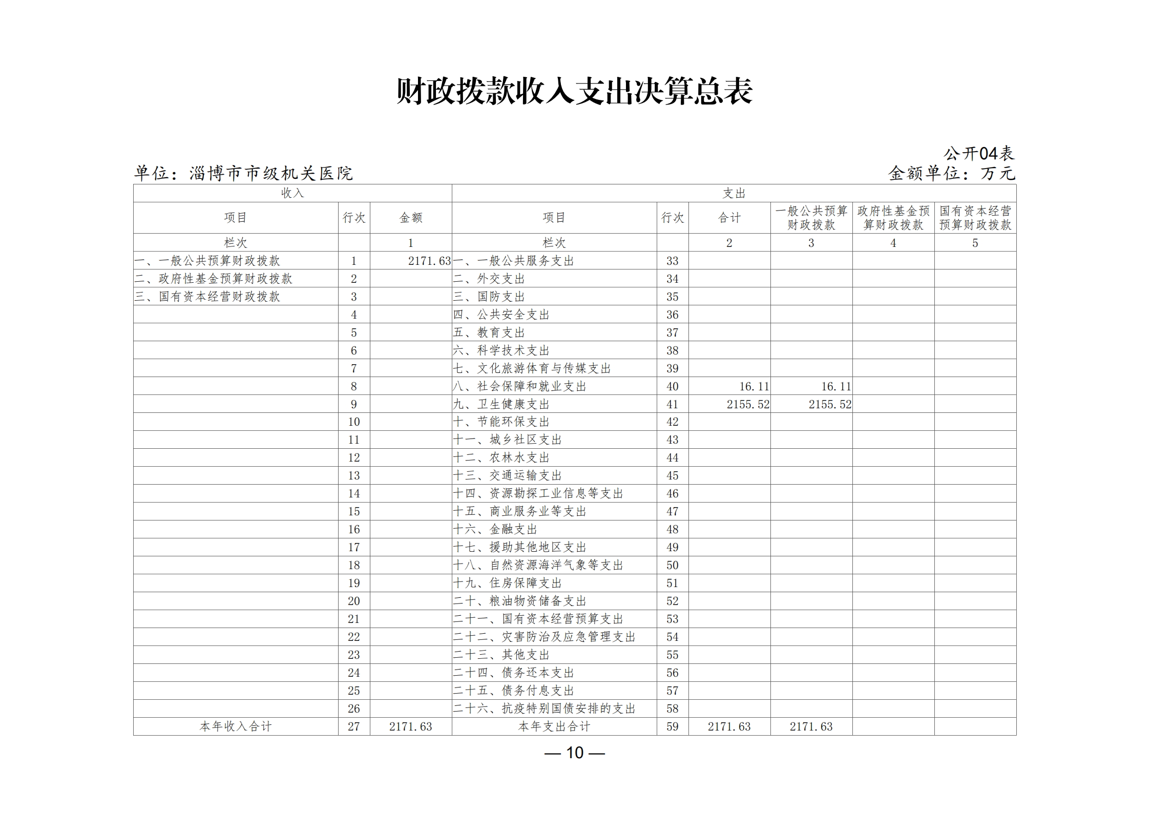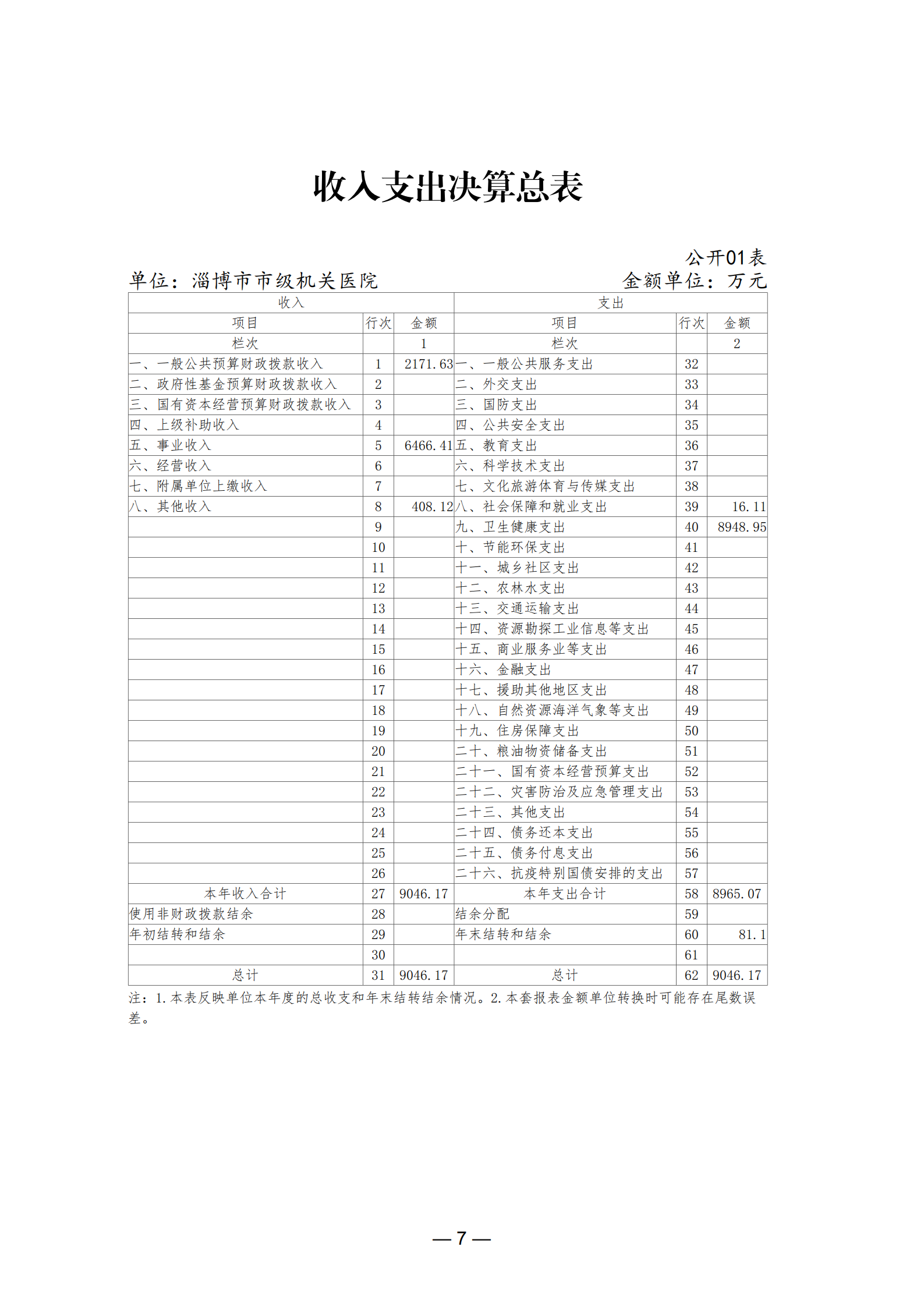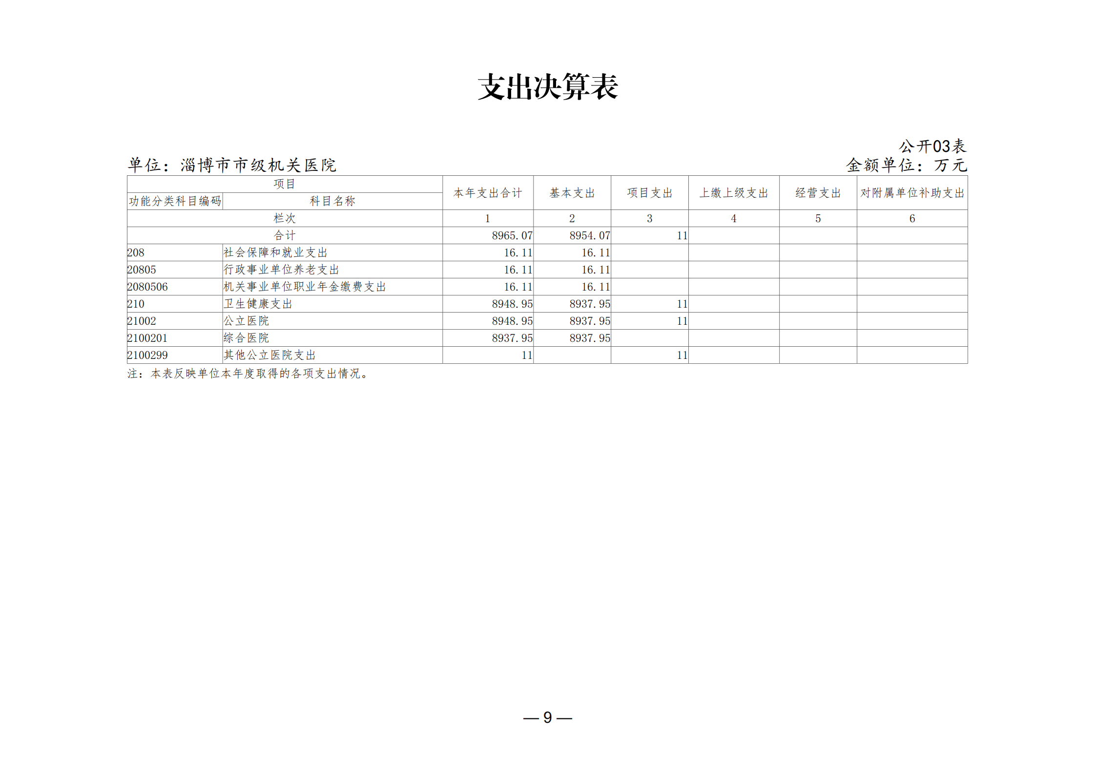 【决算公开】2021年度淄博市市级机关医院决算报告